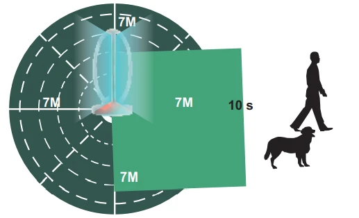 1. V kolikor se človek ali žival približa svetilki na 7 m ali manj, radarski senzor izklopi svetilko. |
