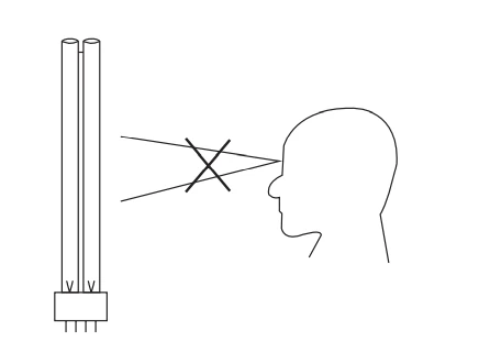 Ne glejte neposredno v UVC svetilko! UVC sevanje lahko povzroči resne poškodbe oči in kože!