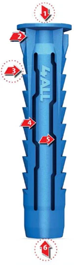 Posebnost in prednost visoko vzdržljivih najlonskih zidnih vložkov je uporabnost v vseh tipih gradbenih materialov: beton, porozna opeka, zidna plošče.